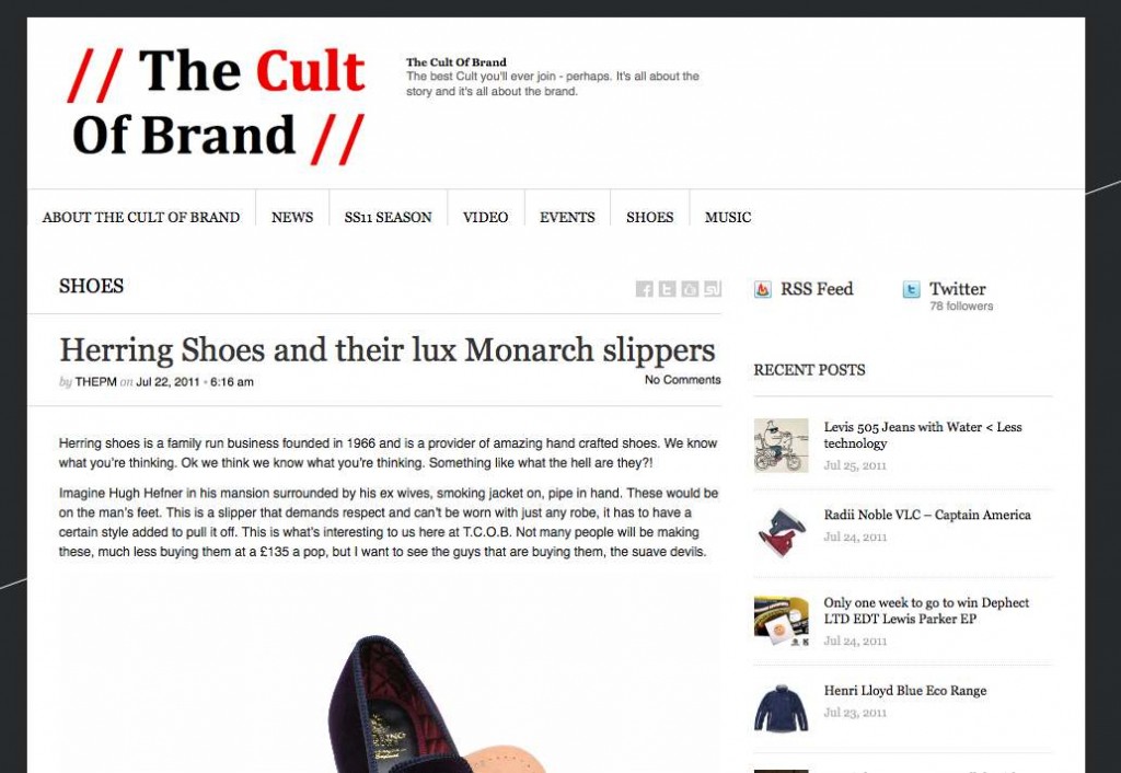The Cult of Brand (who pitch themselves as ‘The best Cult you’ll ever join – perhaps. It’s all about the story and it’s all about the brand’) recently featured our Monarch slippers on their website.