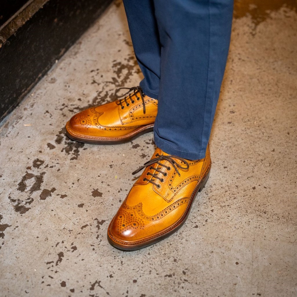 As previously discussed…absolutely, avoid wearing tan shoes with black, charcoal or dark grey suits and you’ll be fine. Tan is all good though for light grey and any shade of blue suit, including a pinstripe. Tan with dark navy is a standout combination – that zing I was talking about in the opening paragraph of this article. You can still wear a traditional Oxford or a gorgeous wholecut, just choose a light brown or tan leather. A tan shoe will also look good with a Prince of Wales check or herringbone weave. For dark brown suits though, stick with a darker complementary brown for your shoes.